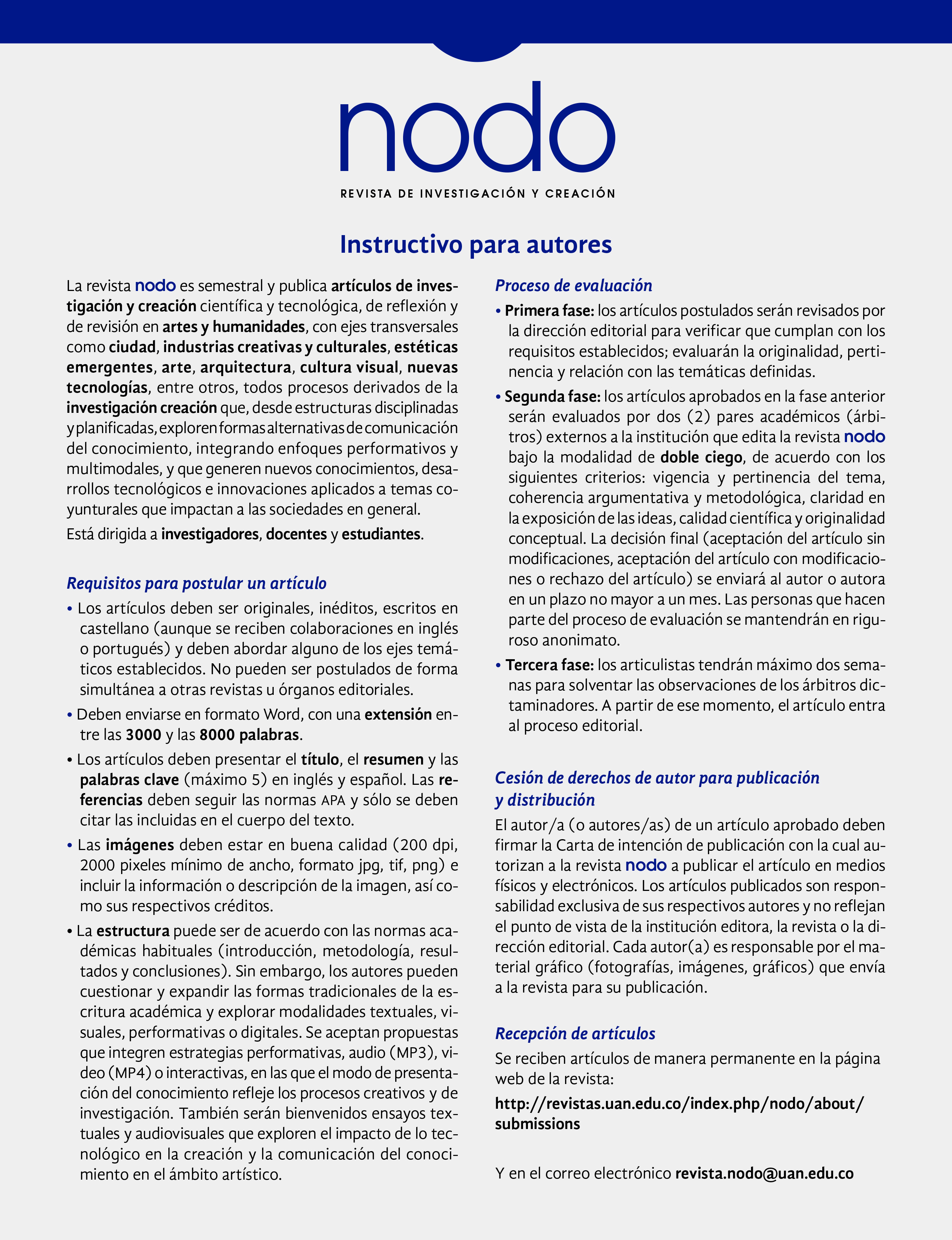 ¿Dudas? Contactar al equipo editorial: revista.nodo@uan.edu.co
